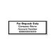 Tout le texte peut être modifié, modifié ou supprimé. Pour dépôt seulement est en haut. Au milieu, vous pouvez ajouter le nom de l'entreprise. En bas, il y a une place pour le numéro de compte bancaire. Un rectangle noir forme la bordure.