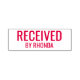 Reçu par le timbre auto-encre Nom. Gros caractères gras - très facile à lire. Les deux lignes de texte sont personnalisables. Choisissez votre couleur d'encre préférée.