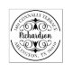 Timbre d'adresse de retour arrondi personnalisé orné d'un emblème décoratif de travail de défilement entourant le nom de famille. Insérez votre nom et votre adresse à la place de l'exemple de texte figurant dans le modèle de conception. Conçu pour vous par Blackberry Boulevard.