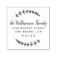 Ce timbre est un must pour toute famille à la recherche d'une touche personnelle à son envoi! Ce design inclut votre nom de famille dans un script écrit à la main avec votre adresse de retour en dessous et 2 branches rustiques en haut et en bas, donnant au timbre une forme ronde. Cliquez sur le bouton "personnaliser" et tapez votre nom de famille et votre adresse dans les zones de texte fournies !