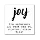 Ce timbre de vacances moderne comporte un script de calligraphie de brosse "joy" et vos informations d'adresse de retour. Il est facile de le customiser avec vos propres informations et de sélectionner une couleur d'encre. Ce timbre facilite l'adressage de vos enveloppes de vacances et fait aussi un merveilleux cadeau ou rembourrage!