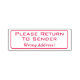 Cette estampille de base comporte les messages "Please Return To Sender" et "Wrong Address!". Il pourrait être utilisé pour indiquer que le courrier reçu a été livré à la mauvaise adresse et devrait être retourné à l'expéditeur.