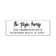 L'estampille en caoutchouc d'adresse de retour simple et élégant comprend votre nom en écriture manuscrite chic, avec deux lignes pour votre adresse de retour en dessous de l'estampille sans serif classique.