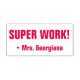 Ce design amusant de timbres en caoutchouc comprend le message positif "SUPER TRAVAIL !" et le nom d'un tuteur personnalisé. Il pourrait être utilisé par un enseignant ou un éducateur pour marquer les affectations, pour reconnaître que l'étudiant a fait un excellent travail.