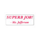 Ce design inspirant d'estampille en caoutchouc comprend le message motivant "SUPERB JOB!" et le nom d'un tuteur personnalisé. Il pourrait être utilisé par un enseignant, un éducateur ou un tuteur pour évaluer le travail des étudiants, pour reconnaître qu'un étudiant a fait un travail exceptionnel.