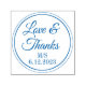 Mariage élégant merci timbre en caoutchouc auto-encre avec texte personnalisé et cadre double cercle. Personnalisez le texte pour vos besoins mariages. Idéal pour estamper les ballotins, les sacs ou les étiquettes.