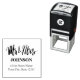 Timbre d'adresse automatique M et Mme pour la maison, mariage, réception, douche nuptiale, anniversaire, fiançailles et autres occasions. Design élégant de lettrage manuel avec typographie de script de brosse. modèle vintage pour les invitations rustiques, cartes de réponse décontractées, jolis autocollants et étiquettes. Ajoutez votre propre nom de famille sous la belle écriture. Accessoires do-it-yourself élégants et fournitures tendance pour les couples mariés. Étiquettes manuscrites classiques. Partie du jeu de collections correspondant.