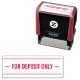 Cette conception moderne de timbre en caoutchouc comporte le message "POUR DÉPÔT SEULEMENT". Il peut être utilisé par un professionnel de la comptabilité, un propriétaire d'une petite entreprise ou un employé de bureau pour ajouter efficacement une cote restrictive à un chèque.