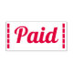 Ce design en caoutchouc clair comporte le message "Payé". On pourrait peut-être l'utiliser pour indiquer qu'une facture ou une facture a été payée en entier.