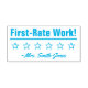 Ce design inspirant de timbres en caoutchouc comprend le message de rétroaction motivant "Travail de premier ordre !" et le nom d'un enseignant, d'un éducateur ou d'un tuteur customisé. Il est également décoré en étoile. Il pourrait être utilisé par un enseignant, un éducateur ou un tuteur pour évaluer le travail des élèves, pour indiquer qu'un étudiant a fait un travail exceptionnel.