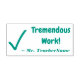 Ce design motivant de timbres en caoutchouc comprend le message inspirant "Travail prodigieux !" et le nom d'un enseignant ou d'un éducateur customisé. Il pourrait être utilisé par un enseignant, un éducateur ou un tuteur pour évaluer le travail des élèves, pour indiquer qu'un étudiant a fait un travail exceptionnel.