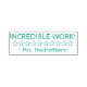 Ce design inspiré de timbres en caoutchouc comprend le message "TRAVAIL INCROYABLE !" et le nom d'un tuteur personnalisé. Il est également décoré en étoile. Il pourrait être utilisé par un enseignant, un éducateur ou un tuteur pour marquer les affectations, pour indiquer qu'un élève a bien fait.