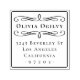 Cette typographie classique Nom personnalisé Adresse de retour Le timbre d'adresse comporte un type serif élégamment espacé avec des fleurs calligraphiques en italique et une bordure carré avec des coins arrondis. L'impression générale est d'une sobriété de bon goût et d'une clarté classique intemporelle.