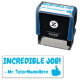 Cette conception motivante de timbres en caoutchouc comprend le message positif "UN TRAVAIL INCROYABLE !" et le nom d'un enseignant sur mesure. Il dispose également d'une icône décorative. Il pourrait être utilisé par un enseignant, un éducateur ou un tuteur de l'école pour marquer les affectations, pour indiquer que l'étudiant a fait un excellent travail.