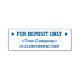 Ce design de timbre en caoutchouc respectable comprend le message "POUR DÉPÔT SEULEMENT", ainsi qu'un nom personnel/commercial personnalisé et un numéro de compte. Il pourrait peut-être être utilisé par un administrateur de bureau ou un propriétaire d'une petite entreprise pour ajouter efficacement une approbation restrictive à un chèque.