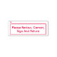 Cette simple estampille en caoutchouc comporte le message "Veuillez vérifier, corriger, signer et retourner", ainsi qu'une ligne indiquant qu'une signature ou des initiales pourraient être écrites ci-dessus. Il pourrait peut-être être utilisé par un enseignant ou un professionnel de l'administration pour demander que quelqu'un examine et reconnaisse le contenu d'un document.