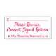 Cette estampille de base comporte le message "Veuillez vérifier, corriger, signer et retourner", ainsi qu'une ligne pour une signature ou des initiales à écrire ci-dessus. Il comporte également un nom personnalisé. Un enseignant, un éducateur ou un tuteur pourrait peut-être l’utiliser pour demander à ses parents ou tuteurs d’examiner le travail de l’étudiant à l’occasion d’un examen, d’un papier ou d’une autre tâche.