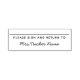 Timbre autocollant avec texte personnalisable "veuillez signer et revenir à" et votre nom personnalisé dans une police manuscrite de style.