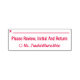 Cette estampille en caoutchouc de base comporte le message "Veuillez revoir, initial et retour", ainsi qu'une ligne pour une signature ou des initiales à écrire ci-dessus. Il porte également le nom d’un éducateur ou d’un enseignant customisé. Un enseignant, un éducateur ou un tuteur pourrait peut-être l’utiliser pour demander à ses parents ou tuteurs d’examiner le travail de l’étudiant à l’occasion d’un examen, d’un papier ou d’une autre tâche.