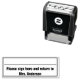 Ce timbre a un modèle. Une ligne vide est en haut pour que le parent se connecte. Il y a deux lignes de texte d'affichage sous la ligne vide. (Montré : S'il vous plaît signer ici et revenir à Mme Anderson) Vous pouvez modifier le texte pour afficher un message personnalisé et le nom correct de l'enseignant. Une bordure est autour du texte.