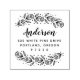 Élégant timbre d'adresse de retour floral avec des bordures de haut et de bas de fleurs et de feuilles dessinés à la main. Personnalisez le cachet personnalisé en ajoutant votre nom de famille, votre adresse et votre code postal. Idéal pour les mariages, les baby showers, les vacances, et plus encore.