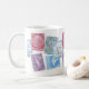 Octobre est le mois de collecte de timbres. Célébrez avec cette tasse recouverte de timbres.