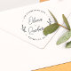 Tampon en caoutchouc circulaire moderne rustique élégant avec verdure en forme de cercle avec lettrage cursif et texte moderne.