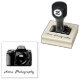 Camera Photography Design Timbre en bois avec texte personnalisable. Pour l'instant, supprimez l'exemple de texte et laissez vide.