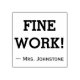 Ce design amusant de timbres en caoutchouc comprend le message inspirant "FINE WORK!" et le nom d'un éducateur personnalisé. Il pourrait être utilisé par un enseignant ou un éducateur pour marquer les affectations, pour reconnaître que l'étudiant a bien fait.