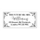 Ce timbre en bois est conçu pour un événement spécial, probablement un mariage ou un anniversaire, compte tenu des noms et de l'adresse, et l'inclusion de coins fleuris décoratifs.
