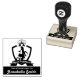 La conception du produit présente un blason avec un manchot debout avec une chambre à air et un ballon de plage. Cette illustration d'animal sauvage adorable avec un texte personnalisé fait un tampon en caoutchouc mignon et unique pour les enfants.