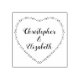 Tampon personnalisé pour couples pour mariage, fiançailles, douche de mariée, anniversaire ou juste comme ça. Noms de typographie moderne élégante au centre d'une couronne de fleurs et de vignes verdoyantes de style d'art folklorique élégant et rustique. Tout le texte peut être personnalisé. L'illustration de cœur tendance a été inspirée par la broderie vintage, les valentines rétro et le style d'art de tatouage simple. Parfait pour les invitations, le scrapbooking, les travaux manuels, les cartes de vacances, les notes de remerciement, ou comme idée de cadeau unique et de bon goût pour un mariage, des fiançailles, une douche de mariée ou un anniversaire.