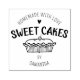 Ce timbre en caoutchouc "Gâteaux sucrés faits maison" comporte une tarte avec un nom personnalisé.