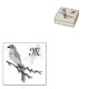 Un Jay de Floride debout sur une branche. Le joli oiseau regarde à gauche, les plumes bleues sont derrière la branche. Sur le côté supérieur droit est un filigrane de l'oiseau, et est le meilleur endroit pour le monogramme, comme par défaut la lettre M est affichée, et peut être changée.