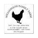 Créez vos propres tampons d'oeuf pour votre ferme familiale avec ce modèle captivant! Ce design a été conçu en pensant à votre petite entreprise familiale et il peut être utilisé avec différents styles d'emballage et d'emballage. Ce timbre en caoutchouc moderne présente une silhouette rustique simple d'une poule. Le nom de la ferme familiale apparaît sur le dessus dans un gros lettrage classique en gras, se déplaçant sur l'illustration. Sous la poule, il y a un espace pour votre slogan personnalisé (le modèle dit frais, libre, cueilli tous les jours), en italique. Et en dessous il y a une adresse et un numéro de téléphone. Pour customiser ce timbre, cliquez simplement sur Personnaliser ce bouton modèle et remplacez le libellé.