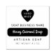 Product stamp for packaging your homemade and handcrafted skincare products or beauty products. Add a tagline, net weight, product name, business name, and any additional information you need in charming fonts. Handmade is written in a cute heart above the product name. Soap product stamp for your soap labels.