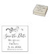 Faites votre propre mariage enregistrer le cachet de la date avec le texte Enregistrer la date dans le script moderne et élégant, les noms de mariée et de mariée, la date mariage, l'emplacement mariage et le feuillage simple. Personnalisez le texte en fonction de vos besoins. Ce timbre peut être utilisé pour tout autre événement de couple comme dîner de répétition, fiançailles, anniversaire, douche de couple,...