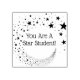 Tampon encreur avec un tourbillon d'étoiles entourant le texte " Vous êtes un élève star ". Superbe tampon pour vos élèves pour montrer à quel point ils se débrouillent bien en classe. Modifiez le texte pour lire tout type d'encouragement pour votre enfant, garderie ou moment de jeu.