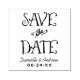Le timbre pour mariage présente "Save the Date" dans un script décoratif avec du texte manuscrit personnalisé qui peut être personnalisé avec les prénoms de la mariée et du marié et la date du mariage.