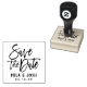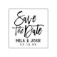 Le design mariage de timbres en caoutchouc caractéristiques "Save the Date" dans l'écriture de script brossé moderne avec un simple monogramme personnalisé des noms de mariée et mariée et la date de mariage.