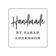 Timbre en caoutchouc avec le texte "Fait à la main" dans une police de script de style manuscrit moderne et votre nom ou autre texte personnalisé ci-dessous.