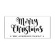 Winter holiday rubber ink stamp featuring the text “Merry Christmas" in a festive script font with your custom name or text below.