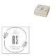 Feuille moderne dessiné à la main Ex Libris Nom personnalisé Timbre en caoutchouc. Avec un cadre élégant avec des feuilles dessinés à la main de chaque côté et une bordure arrondie. Personnalisez facilement avec vos initiales et votre nom pour créer votre propre bibliothèque.