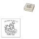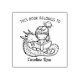 Ce tampon en caoutchouc pour livre présente une fille lisant à un bébé dragon avec un nom personnalisé.