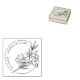 Tampon en bois Floral Botanique de la bibliothèque d'Ex Libris avec des fleurs dessinées à la main et des éléments botaniques, votre nom dans une typographie ronde à gauche avec une bordure circulaire fine.