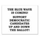 "LA VAGUE BLEUE VIENT. SOUTENIR LES CANDIDATS DÉMOCRATIQUES À LA HAUTEUR ET À LA BALLE !" par Monkey Business Graphic Design, 2024.