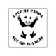 Panda noir et blanc mignon debout sur les pattes arrières, surélevé au-dessus de la tête. Avec le texte changeant qui dit : "Aimez mon panda, mais elle est une ours"