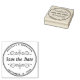 Parfait pour que la mariée soit pour envoyer des invitations ce timbre en caoutchouc mariage à thème Enregistrer la date ajoute une touche d'élégance à vos envois. Cette conception comporte les mots "Save the Date" dans une typographie de script moderne. De part et d'autre se trouve une floraison décorative dessinée à la main avec des coeurs et des feuilles. Le bord extérieur a une double bordure circulaire et à l'intérieur de celle-ci sont les noms du couple et la date du mariage que vous pouvez personnaliser. C'était un plaisir de créer celui-ci pour votre journée spéciale ! Conçu par l'artiste ©Susan Coffey.