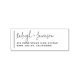 Les noms de couple simples et chic retournent l'adresse cachet en caoutchouc pour les mariages, l'usage personnel et les événements! Cette conception personnalisée comprend vos noms dans un script manuscrit et votre adresse de retour ou vos coordonnées dans la typographie minimaliste. Timbre d'adresse de retour simple et élégant dans un style boho minimaliste ! Pour customiser ces timbres, cliquez sur "Personnaliser ce modèle" et changez le texte dans les cases fournies. Consultez la collection ci-dessous avec les produits correspondants et notre magasin pour plus de designs! N'hésitez pas à nous contacter si vous avez des questions !