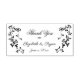 Timbre en caoutchouc avec Merci dans une belle police élégante avec des vignes en feuilles drapées.